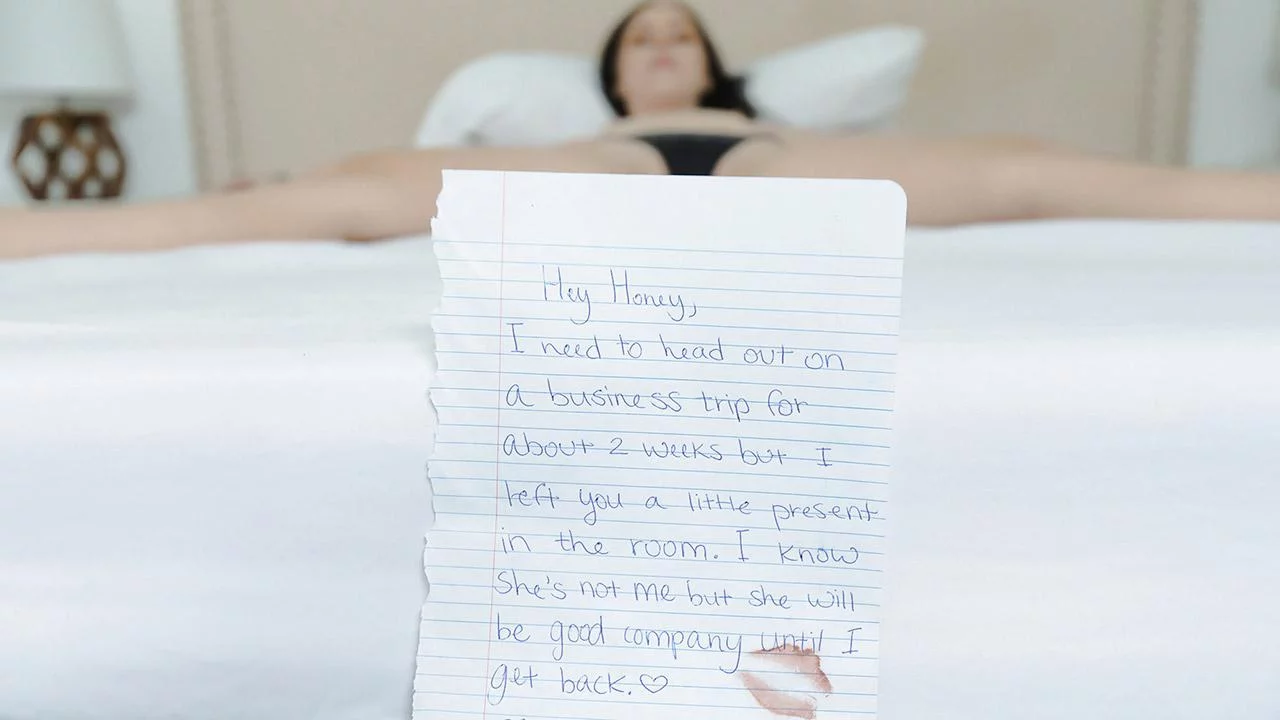 Our stud is confused. He walks into an empty house looking for Linda, but cannot seem to find her. He walks around with a vacant look on his face, calling her and calling her until he finally enters one of the bedrooms. To his surprise, he sees some girl, not Linda, tied down and topless on the bed. He finds a note from the mysterious Linda telling him he can do whatever he wants to this knotted nympho. She confirms the message, so he makes his way over, and starts playing with her pussy. Then he chokes her and spits in her mouth. She seems to love it as he pulls his pants down and shoves his cock into her waiting mouth. He throat fucks her, and then lets her free. She crawls like a dog on the floor while he slaps her ass with a belt. Then he pulls her pants down and continues the whipping. He fucks her from behind using the belt as his reigns, and manhandles her all over the couch. When she divebombs on his cock, he wraps his legs around her neck, her down even further. I am not sure if this stud found what he was looking for, but he certainly found something good!