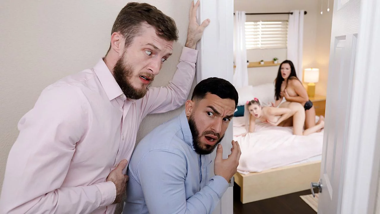 When best friends Alice Visby and Brie Klein discover what Alice’s dad has been watching on his phone, they get turned on and decide to try some of it out for themselves. Alice puts on her strap-on and starts having fun with Brie, unaware that both their dads Brick Danger and Peter Green are witnessing the whole thing. When the dads confront their daughters and threaten to keep them separated, Alice and Brie beg them not to and suggest instead that they all try out a daughter swap. Brick and Peter agree and, switching their daughters, they go on to release all of their tension.