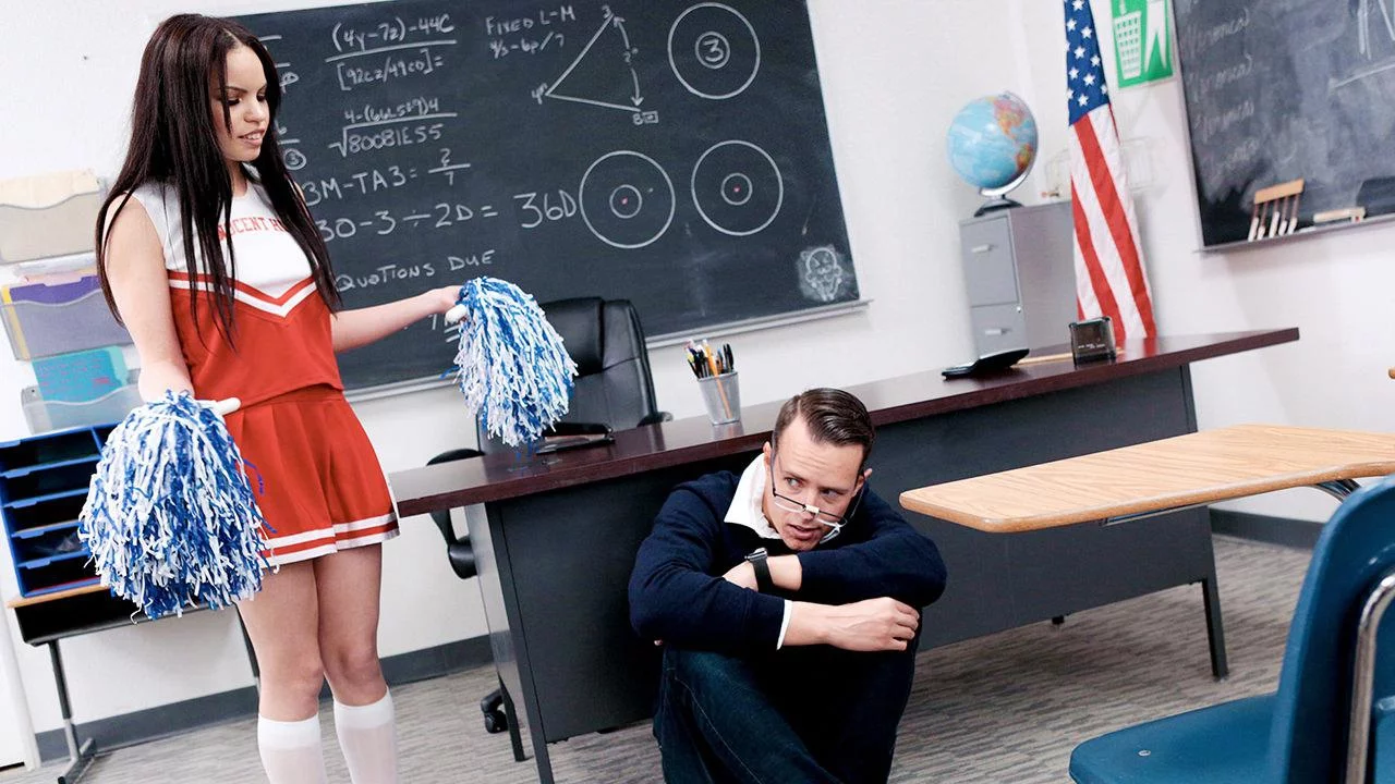 When you’re a nerd in high school, it’s hard to not get picked on. Everyday our geeky stud gets verbally and taken for his paper. He wants to overcome this bullying, but he is too much of a pussy to do anything about it. Luckily, the captain of the cheer squad Tory Bellamy walked in on him as he cowered under a desk. She could see that he had been bullied, and quickly thought of a solution to his problem. Maybe if he had a popular girlfriend people would be start being nice to him! This dweeb then offered Tory herself some cash to take the position. She gladly accepted, then took his hand as they walked around the school. No one was messing with him now! This was amazing, so the nerd decided to take it further. He offered to double the money Tory was getting if they could get a little more intimate. He really wanted to since he was a virgin. Tory agreed and started sucking his long cock right there in the classroom. She then proceeded to get fucked on their favorite teachers desk. Wow this pussy was way better than chess club! Our nerd then emitted a studious nut shot to Tory’s cute face. She enjoyed herself so much that he didn’t even have to pay her next time. This nerd is on a roll!