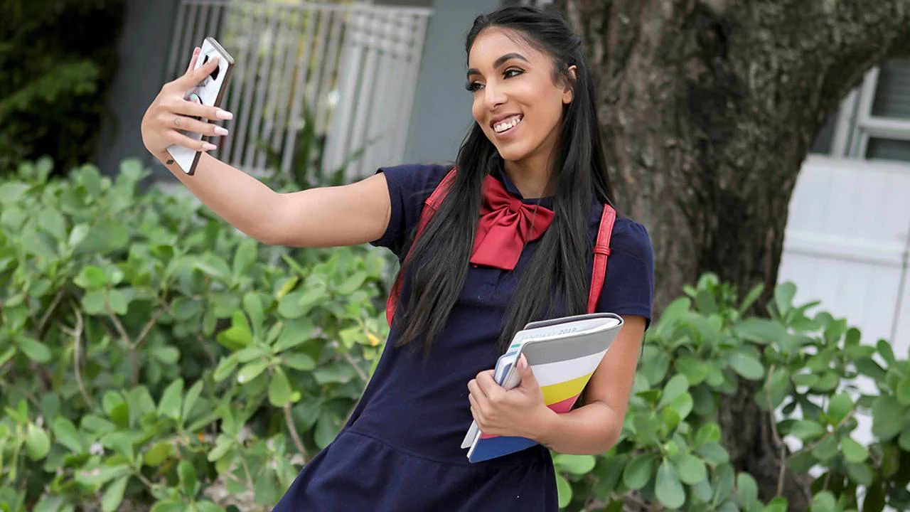 Claire Black is graduating soon, and she does not want to leave school withoutsex first. All the other girls have lost their virginity, and it seems like this caramel cutie is the only one holding onto it. So, she goes over to her favorite teachers house to get some interracial sex education. He whips out his long ruler dick and sticks it in her untouched pussy. She gets soaking wet, letting his shaft slide in and out of her tight teen twat with ease. Then, she practices some tongue action on the tip of his prick. Claire is such a natural, her teacher can hardly believe it. And before he knows it, he is dowsing her in a serving of hot cum. That is one hell of a send off!